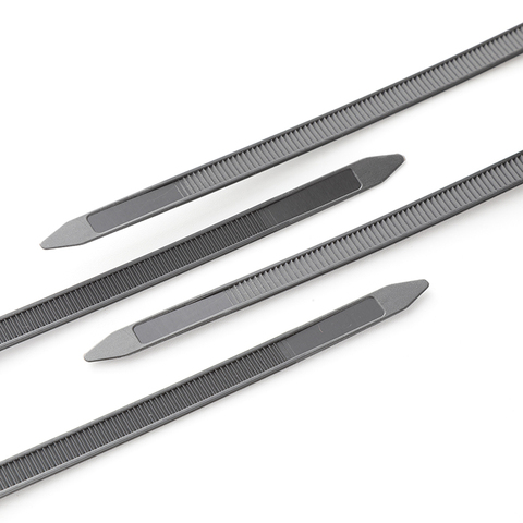 Yüksek sıcaklığa dayanıklı Ss304 4.6*100mm kendinden kilitleme kablo kayışı kravat paslanmaz çelik hammadde Metal Zip bağları